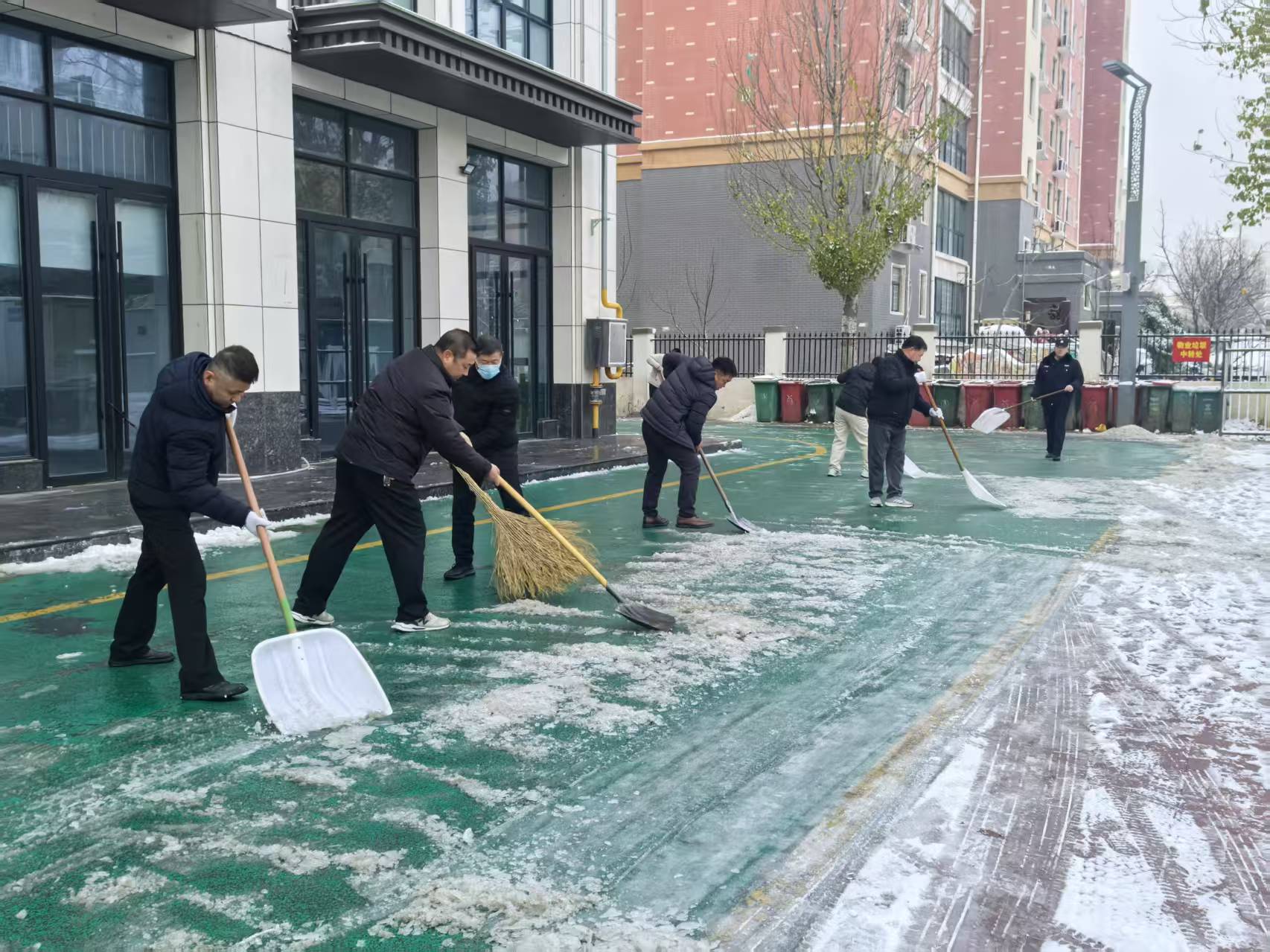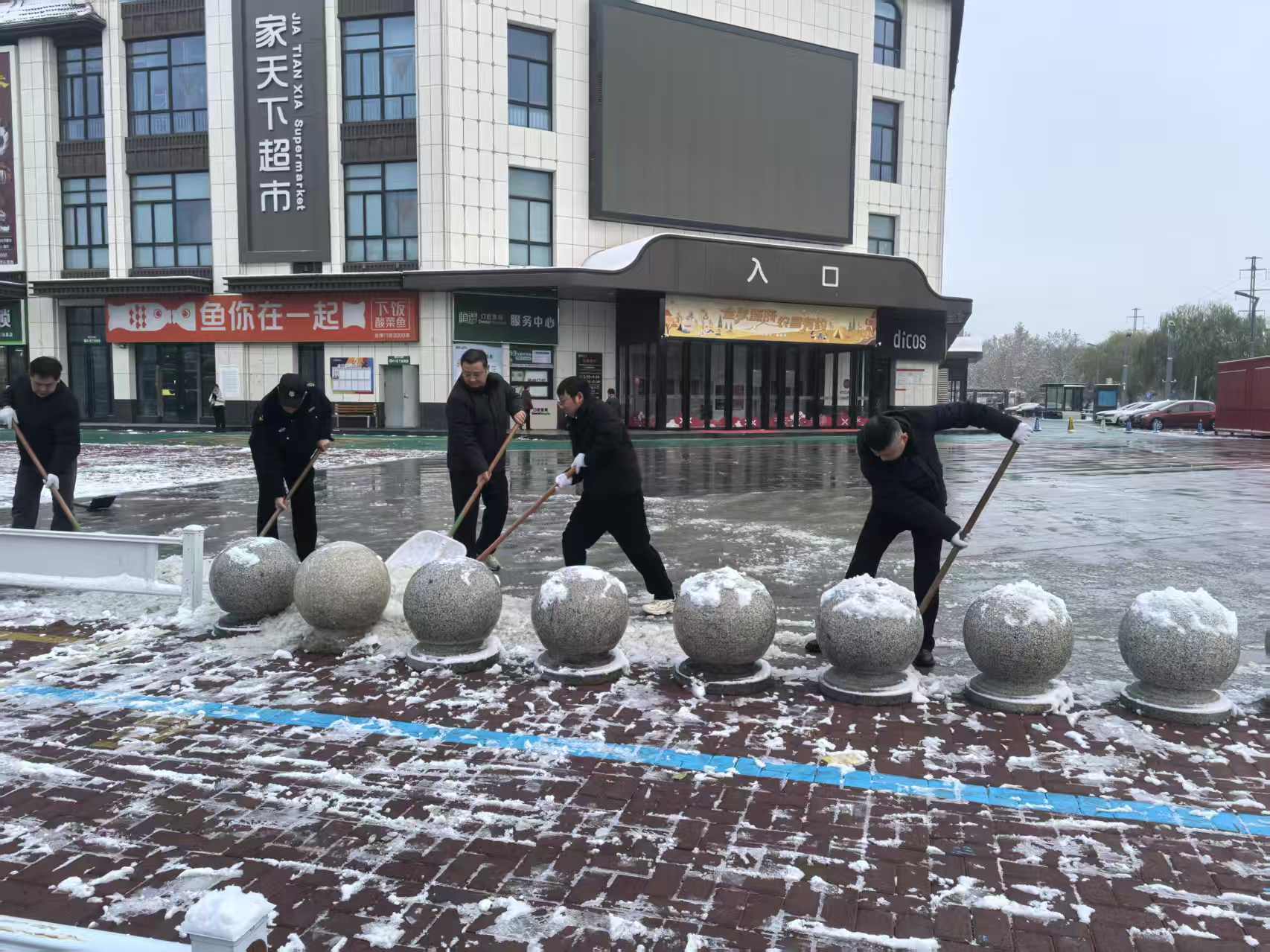 2025年12月13日早上,商貿(mào)公司在購物中心開店前,組織全體人員開展積雪清掃行動。保障商戶經(jīng)營與顧客購物的安全出行,全面清理了購物中心出入口、主通道及周邊區(qū)域的積雪積冰,有效消除了人員通行的安全隱患,為購物中心平穩(wěn)運營筑牢安全防線。